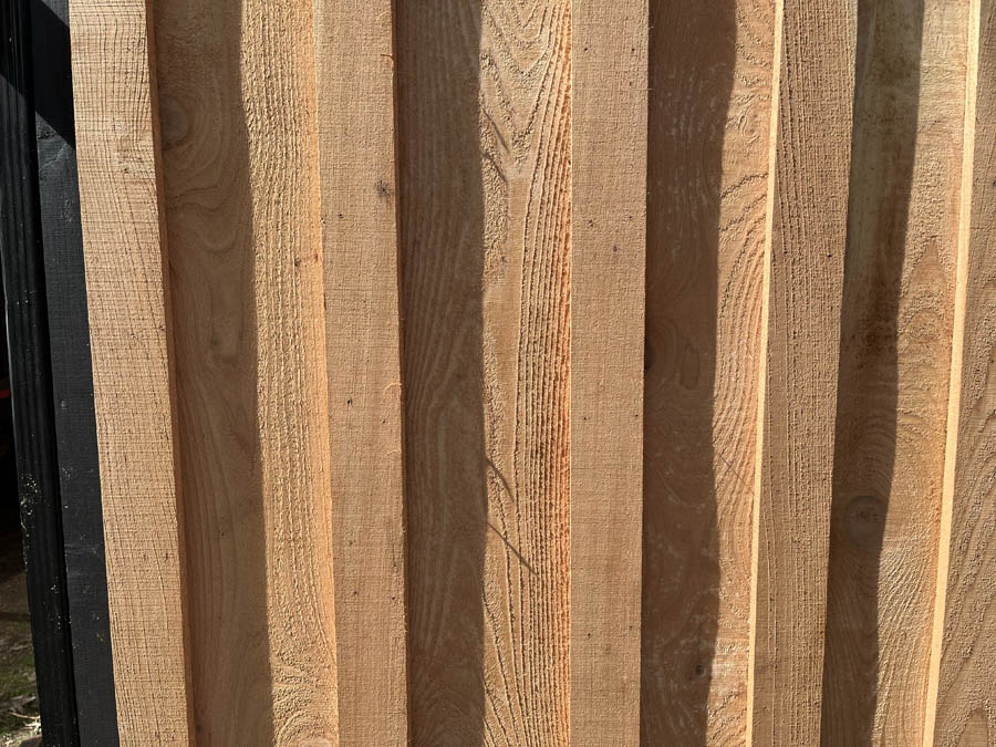 Our supply of Board & Batten can elevate the aesthetic of a home, whether it’s used to cover the entire exterior or to accent certain areas. At Custom Milling, we specialize in Kiln Dried White Pine and Western Red Cedar Board & Batten. Traditionally used for log-house or barn exteriors, Board & Batten is increasing in popularity in modern architectural design. This siding and paneling style uses narrow wood strips that are layered over the joints of wide board to create a geometric effect. The vertical element of Board & Batten gives the illusion of added height to a home, creates a personalized look, and catches the light and shadows throughout the day to give a stunning visual effect. All of our wood products used for siding are carefully selected from reputable mills in Canada.